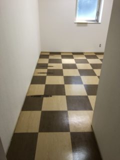 は他の部屋にする為にタイルカーペットを貼りました。